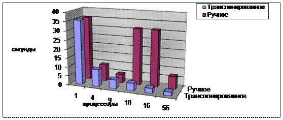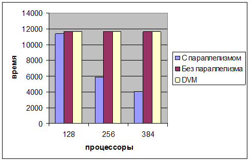процессоров. В качестве результата бралось общее время работы всей задачи в