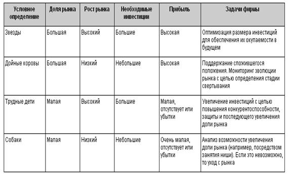 моделью BCG, диктуют выбор вполне определенных направлений действий для