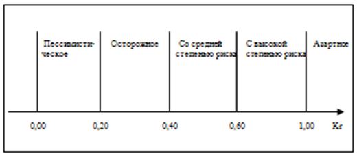 идущих на риск: пессимистическое, осторожное, со средней степенью риска, рискованное,