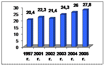 подсобных хозяйств за период с 1997 - 2004 гг.