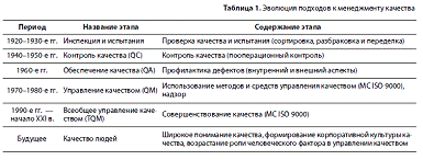 управлению качеством представлен в табл. 2.