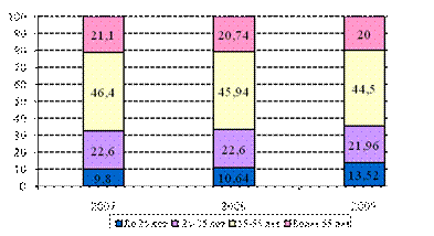 3.Средний возраст работников