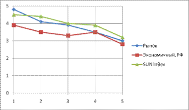 потребителя: качество пива среднее, цена – низкая, отсюда большая выручка и