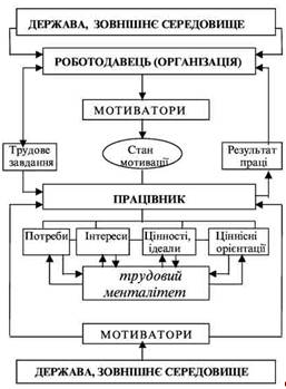 Трудова мотивація працівника, як свідчить рисунок, формується під впливом