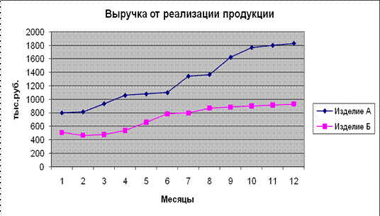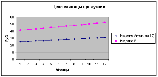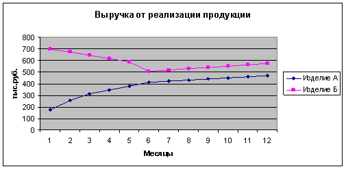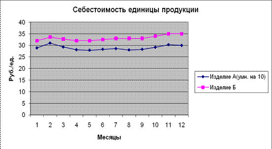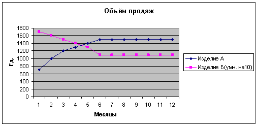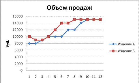 А период резкого роста. С середины года объемы продаж товара А и Б остаются