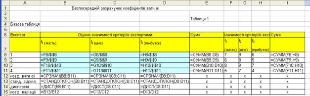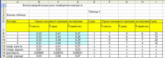 бачимо з розрахунків таблиці 1, найбільше вагомий крітерій – ціна виробу αi = 0,41, найменше вагомий крітерій –