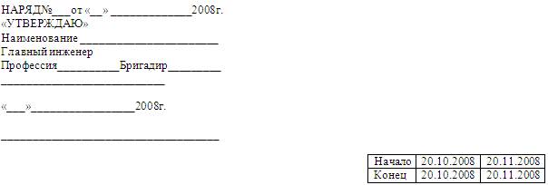 Оформление и закрытие нарядов в условиях бригадной формы организации и