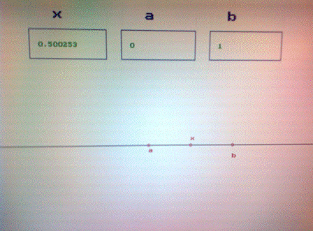 графічно реалізацію метода. Дані для x, a та b завантажуються з текстових