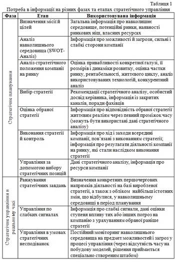 концепція стратегічного управління, при формуванні інформаційного середовища