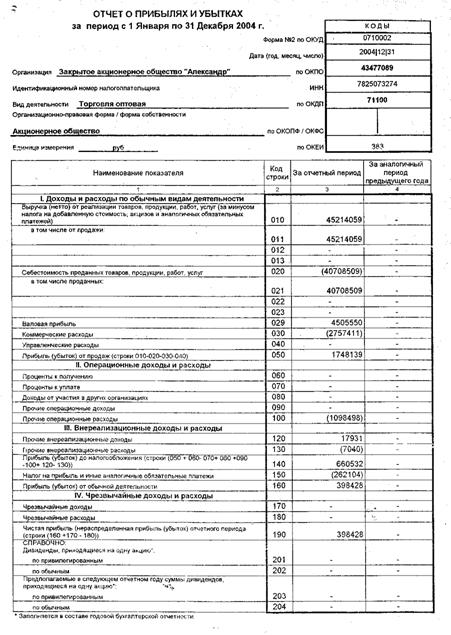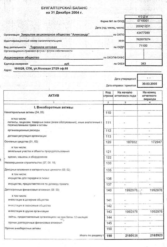 - бухгалтерский баланс и отчёт о прибылях и убытках за 2003 и 2004 год.