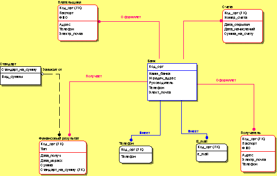 A Банк Имеет zero, one or more Телефонs.