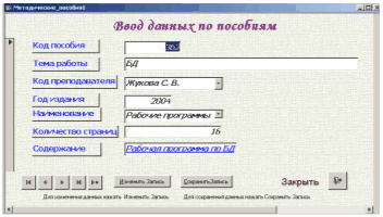 Форма Преподаватель с подчинённой формой Методические пособия: