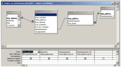 SELECT Методические_пособия.Тема_работы, Преподаватель.Фамилия, [Классификатор
