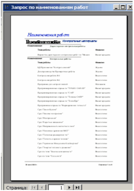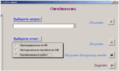 Выбор просмотра отчета Наименования работ в форме Отчёты: