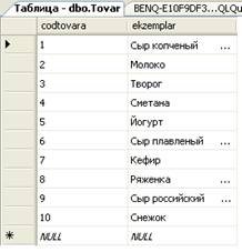 @@rowcount = 1 begin declare @x int select @x = Tovar.codtovara from Tovar