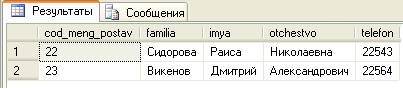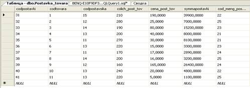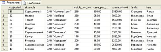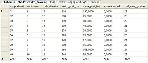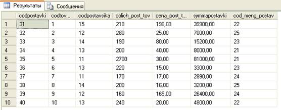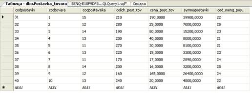 exec Izmenenie @kod = 35 select * from Postavka_tovara