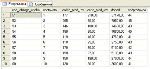 insert into Prodaza_tovara values (60, 10, 120, 30, 0,