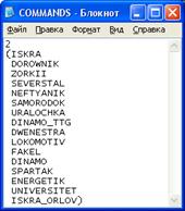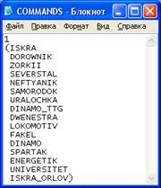 ; списком комманд участников