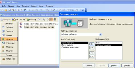 созданные нами таблицы в отчёты с помощью консоли «Создание отчёта с помощью