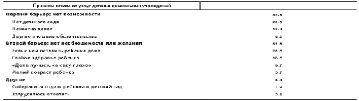 вопрос: «Почему Ваш ребенок не посещает детский сад?»