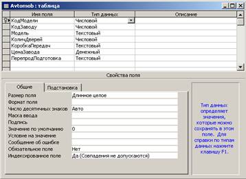 Автомобілі. У вікні конструктора, двічі натиснувши кнопку миші на назві поля,