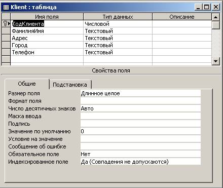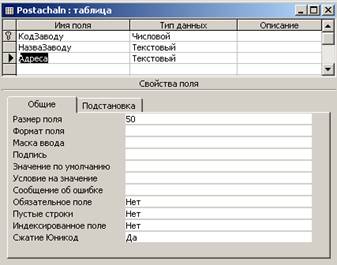У вікні конструктора таблиць виконаємо опис