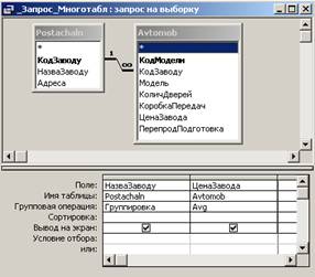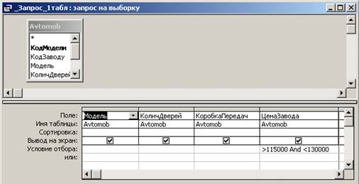 поля ЦенаЗавода для певної моделі автомобіля. Для цього використаємо таблицю Avtomob (поля ЦенаЗавода та Модель). В режимі