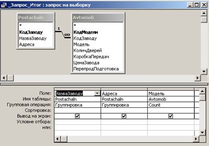 назви заводу та його адреси встановимо Группировка, а для моделі автомобіля – функцію