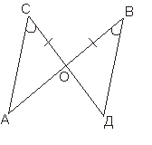 есть по одной равной паре соответствующих сторон и одному равному углу