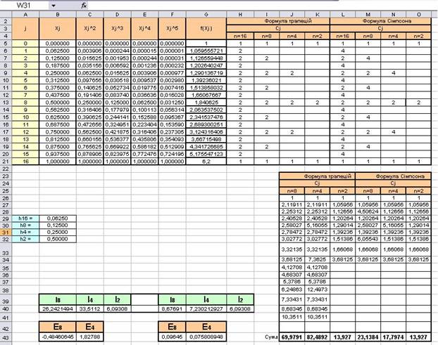 за допомогою формул трапецій та Сімпсона значення інтегралу від функції y=f(x)= a0+a1x+a2x2+a3x3+a