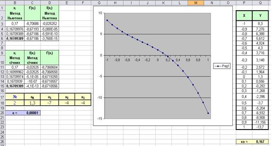 за допомогою методів Ньютона (дотичних) та методу „січних”. Результати