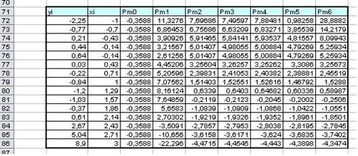 визначені коефіцієнти поліномів аі, визначаємо значення даних