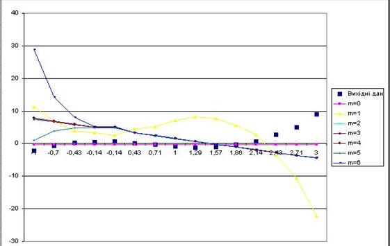 одному графіку будуємо многочлени Pm, m = 0,1,2,..., m*, і точковий