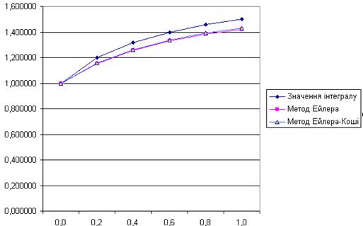 метод Ейлера, скласти на відрізку [а, b] таблицю значень інтегралу