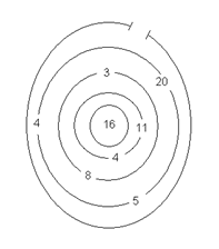 середніх чотирьох квадратах і в тих чотирьох квадратах, що навколо них,