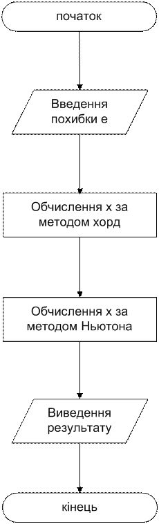 Ньютона та хорд, складено блок-схеми та написано програму, за допомогою якої