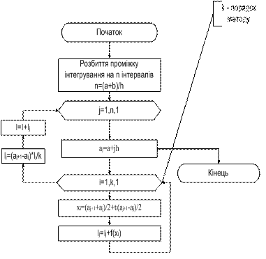 значення ti. Після цього розбивають інтервал інтегрування на k проміжків і