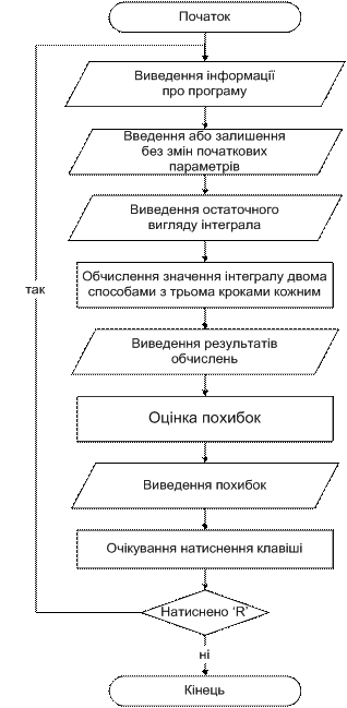 значення інтеграла; R - похибка обчислення інтеграла[2].