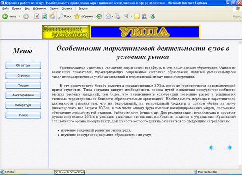 маркетинга в области образования, то в этой работе следует рассмотреть использование
