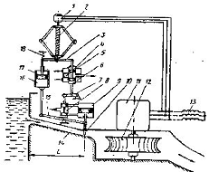 коэффициент усиления (скорость двигателя 1 в 20 раз выше скорости гидротурбины