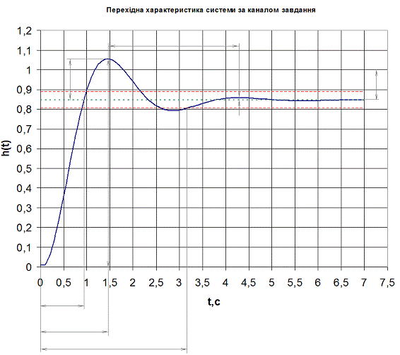 0,342 с, усунути перерегулювання, збільшити запас стійкості системи по фазі з