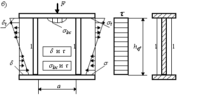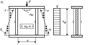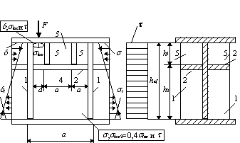 1 - верхний пояс; 2 - нижний пояс; 3 - стенка балки; 4 - ребра