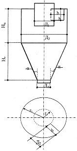визначаються основні розміри окремих елементів циклона при заданих величинах