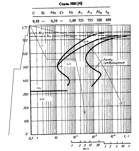 верхняя критическая скорость закалки. Для стали 50Н эта скорость определяется