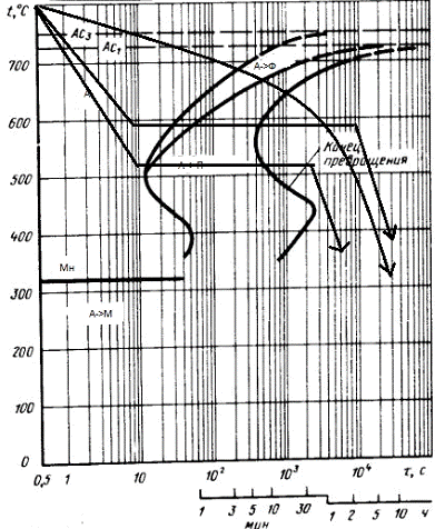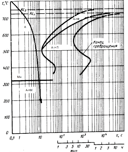 структуре мартенсита необходимо охладить сталь со скоростью ниже Vвкз=17̊C/c,
