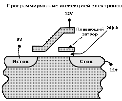 изолятора и попадает на плавающий затвор. Заряд на плавающем затворе изменяет