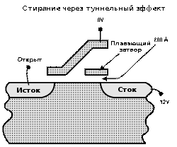 плавающего затвора переходят (туннелируют) на исток.