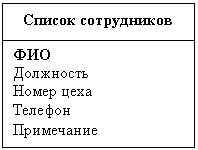 «Список должностей» и «Номера цехов»