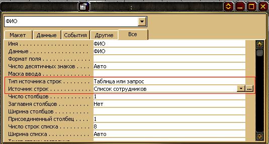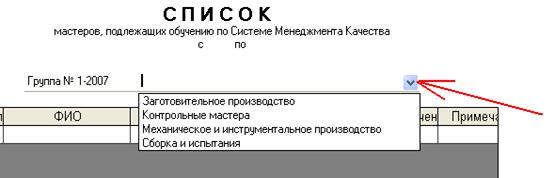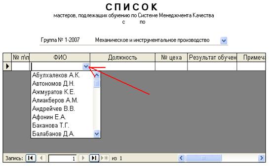 является заполнение списка. После нажатия в поле «ФИО» выбираете нужного сотрудника.