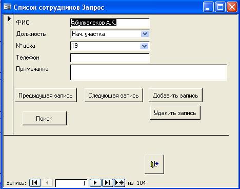 Рис.3 Форма «Список сотрудников»